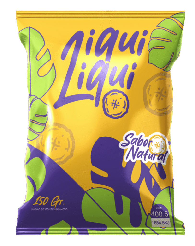 Liqui Liqui Natural is our most authentic snack. Made only with Ecuadorian green plantain and quality vegetable oil, it offers a crunchy texture and a natural flavor with no additives or preservatives.